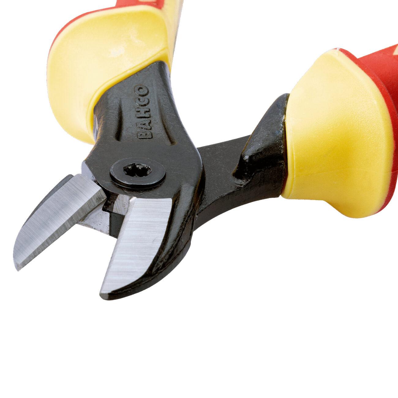 Профессиональные изолированные бокорезы длиной 160 мм предназначены для безопасной работы с кабелями и проводами под напряжением до 1000 В. Инструмент изготовлен из легированной стали с индукционной закалкой режущих кромок, что обеспечивает высокую прочность и длительный срок службы. Эргономичные двухкомпонентные рукоятки обеспечивают комфорт при длительной работе. Идеален для точной резки меди, пластика и рояльной проволоки.