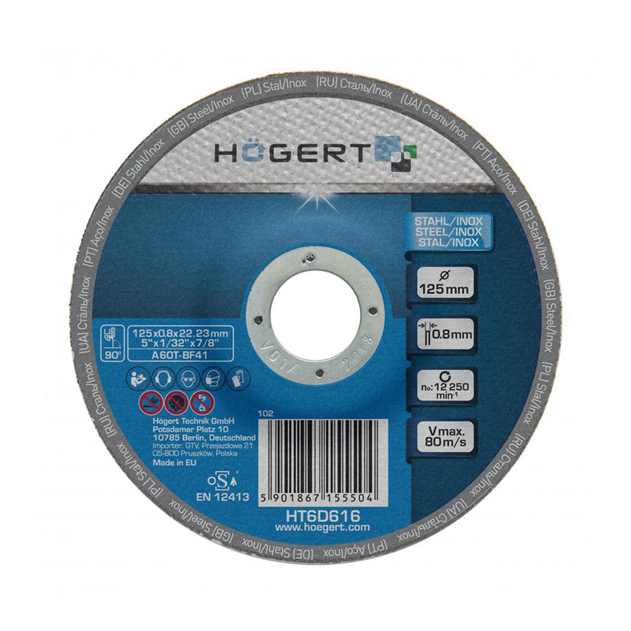 | Диаметр | 125 х 0,8 х 22,23 мм |