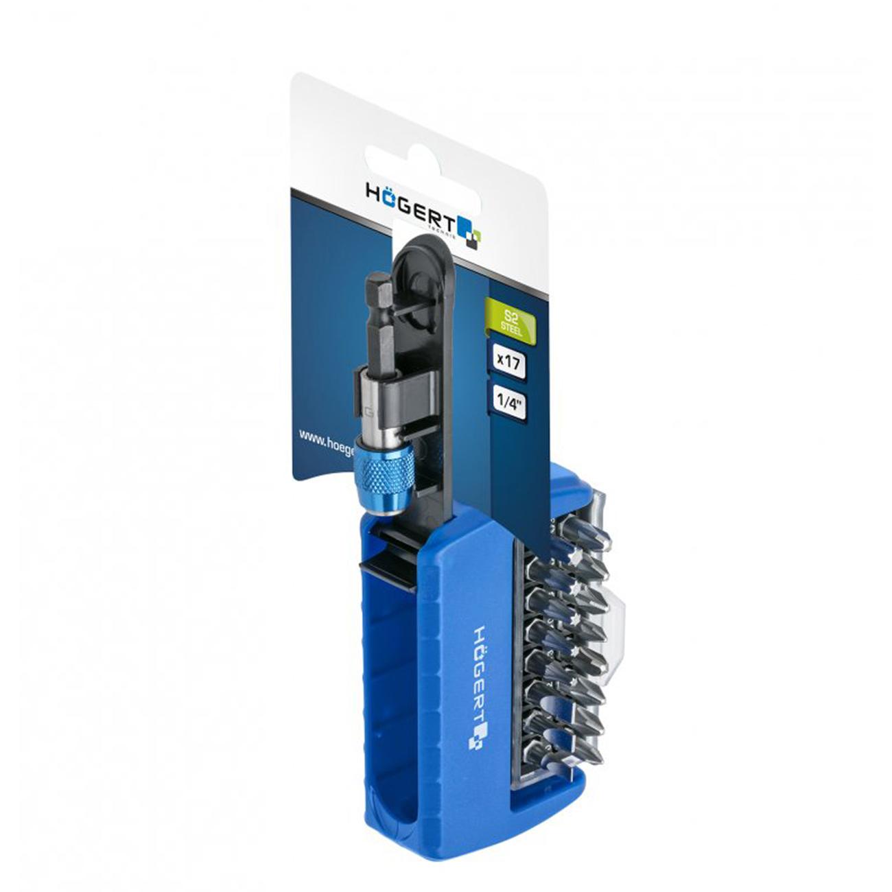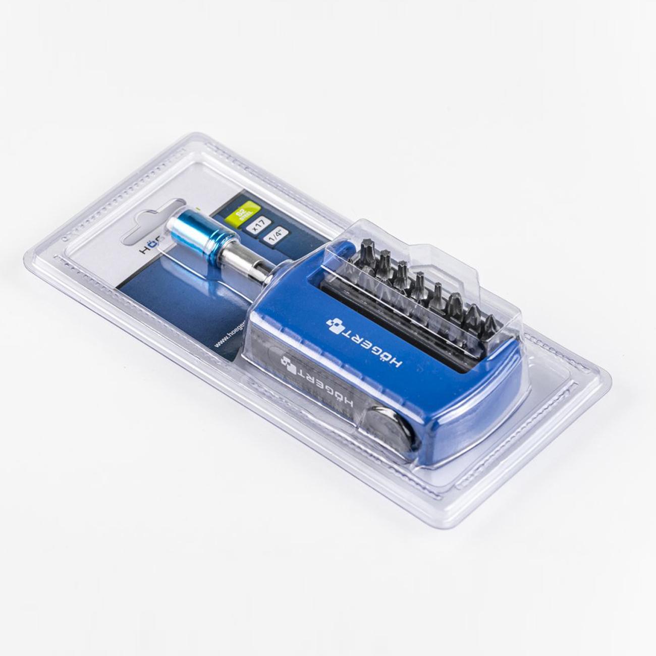 Компактный и эргономичный набор из 17 отверточных битов с магнитным держателем ¼″ (HEX), предназначенный для использования как вручную, так и с аккумуляторными инструментами. Отличный выбор для ремонтных, монтажных и сервисных задач.