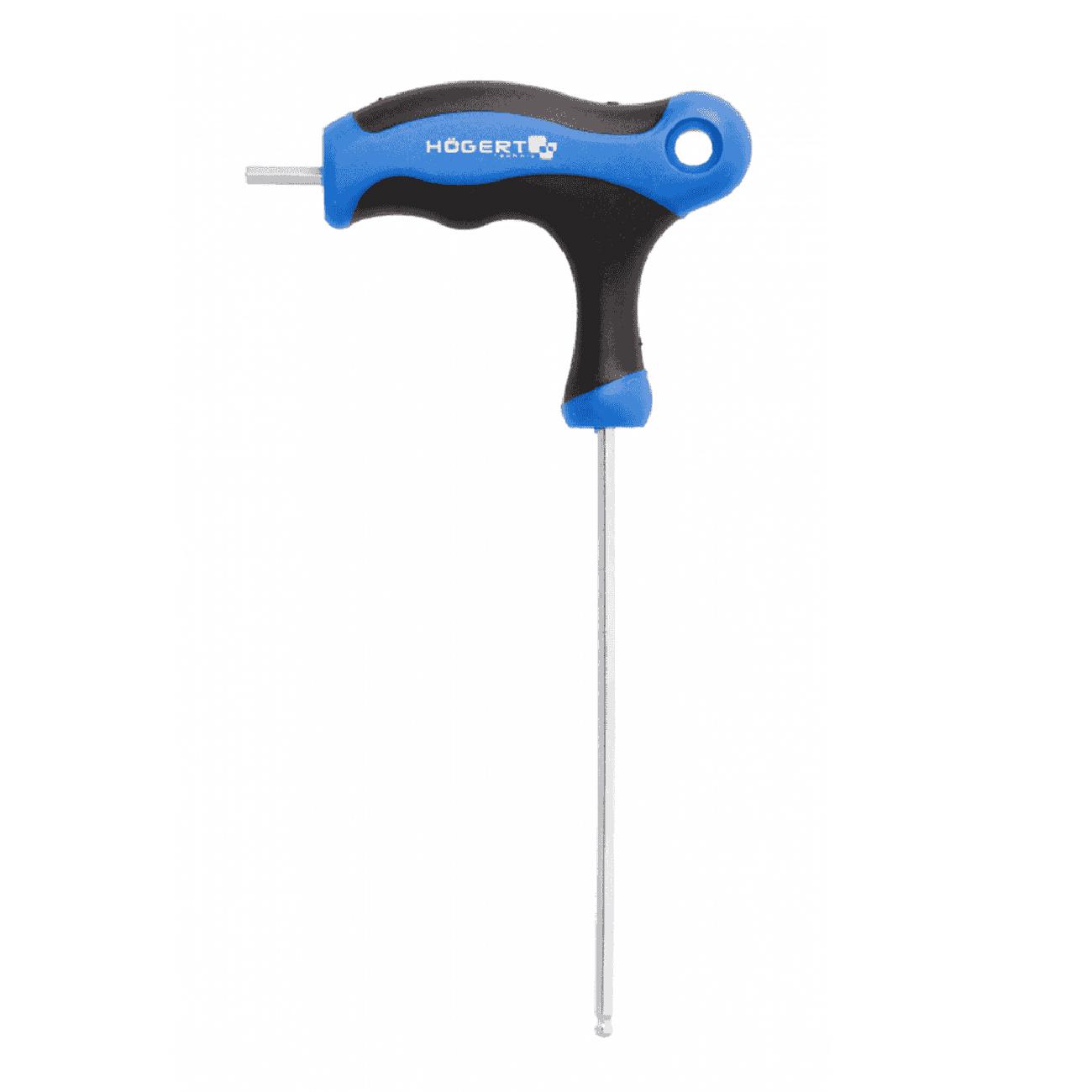Это точный шестигранный ключ типа T с шаровым концом. Инструмент изготовлен из высококачественной S2‑сплавной стали, обеспечивающей максимальную прочность и устойчивость к деформации. Благодаря шаровому концу ключ может работать под углом до 30°, что особенно актуально при работе в труднодоступных местах (например, углублениях или углах)