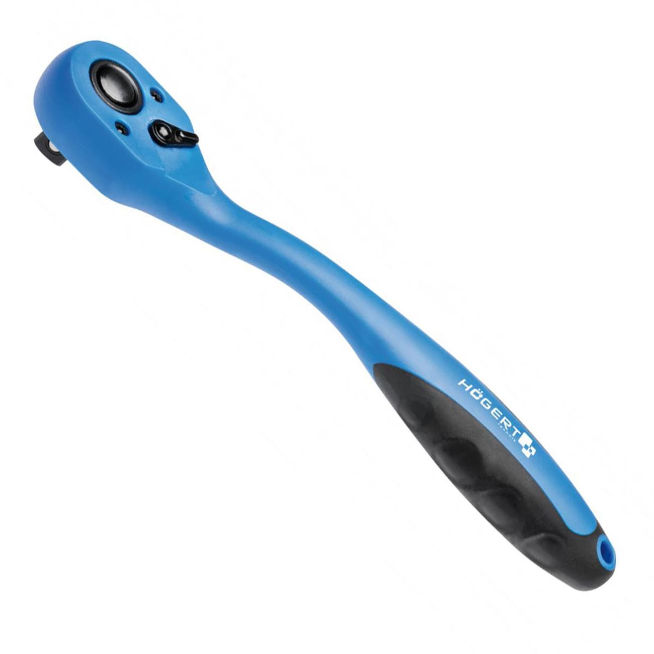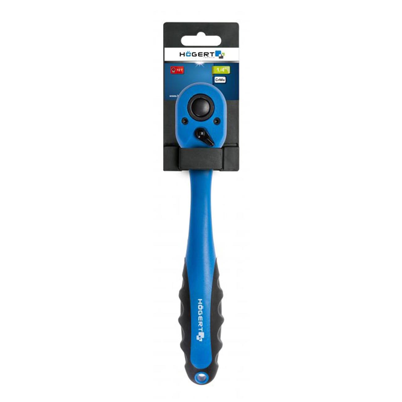 Лёгкая и эргономичная трещоточная рукоять 1/4 (6,3 мм), оборудованная механизмом из хром‑молибденовой стали (CrMo) и корпусом из ударопрочного термопластика PP+TPR. Обладает 72 зубьями, что обеспечивает минимальный угол поворота (~5°), особенно важный при работе в ограниченном пространстве. Функциональные возможности дополняются переключателем направления вращения, системой quick‑release для быстрого снятия головок и высокой стойкостью к коррозии.