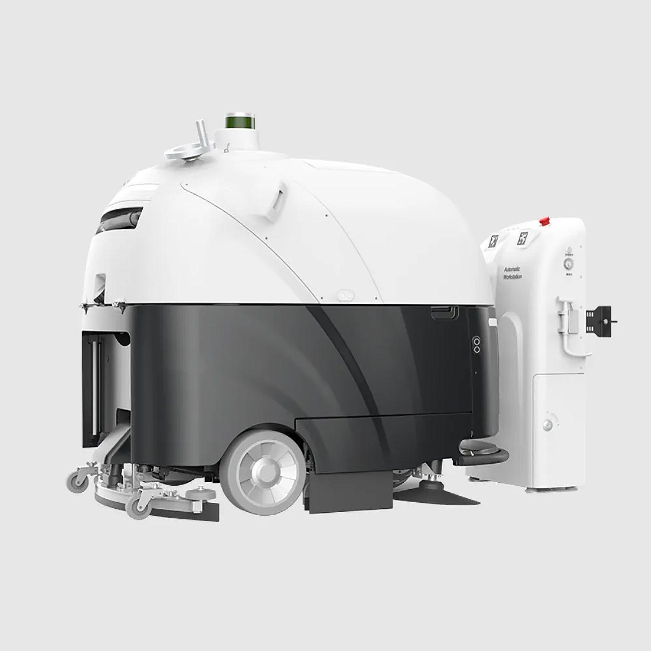 • Автоматическая док-станция: робот сам находит, подключается, заряжается и подготавливается к следующей смене.
