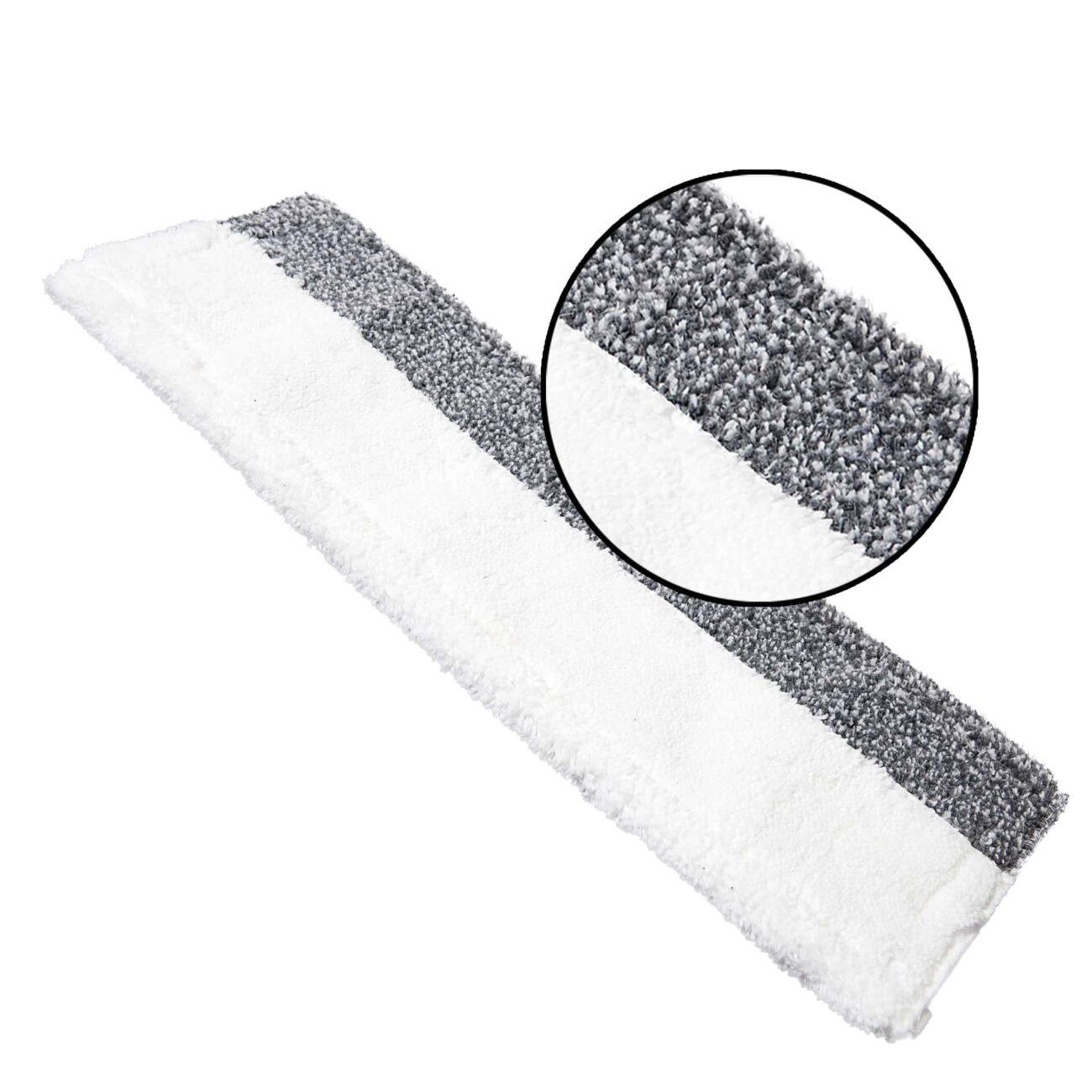 Комбинированный моп из двух материалов: сверхтонкой универсальной белой микрофибры и щеточной микроволокнистой части. Щеточная сторона помогает моющему средству разрыхлять загрязнения (включая швы и неровности), а микрофибра их эффективно захватывает и удерживает вместе с моющим раствором.
