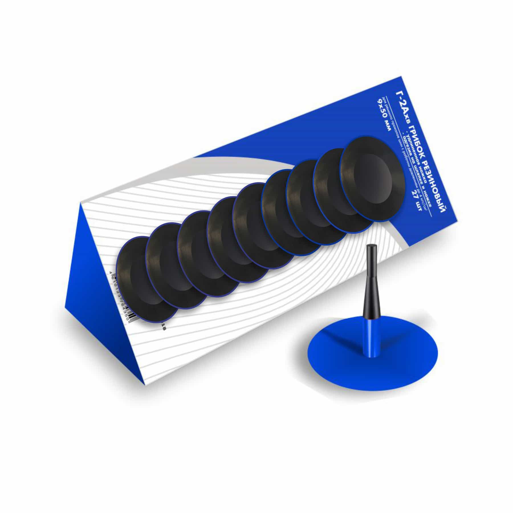 Профессиональный грибок Г‑2 от БХЗ — резиновый ремонтный элемент размером 9 мм (ножка) × 50 мм (шляпка), предназначенный для холодной вулканизации при устранении проколов камерных и бескамерных шин при давлении до 4 кгс/см². Поставляется упаковкой — 27 штук, удобно для мастерских и выездных бригад.