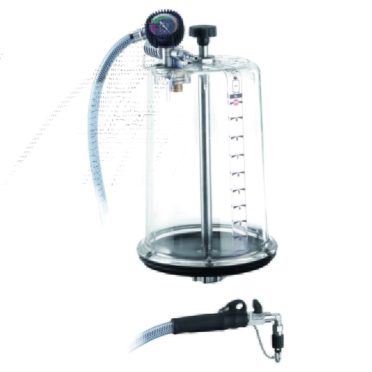 • Прозрачность камеры позволяет видеть, как масло проходит через систему — легко обнаружить загрязнения или пены.