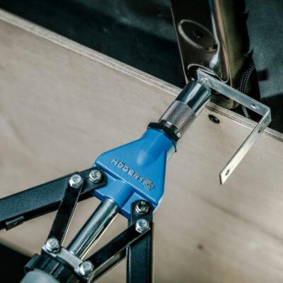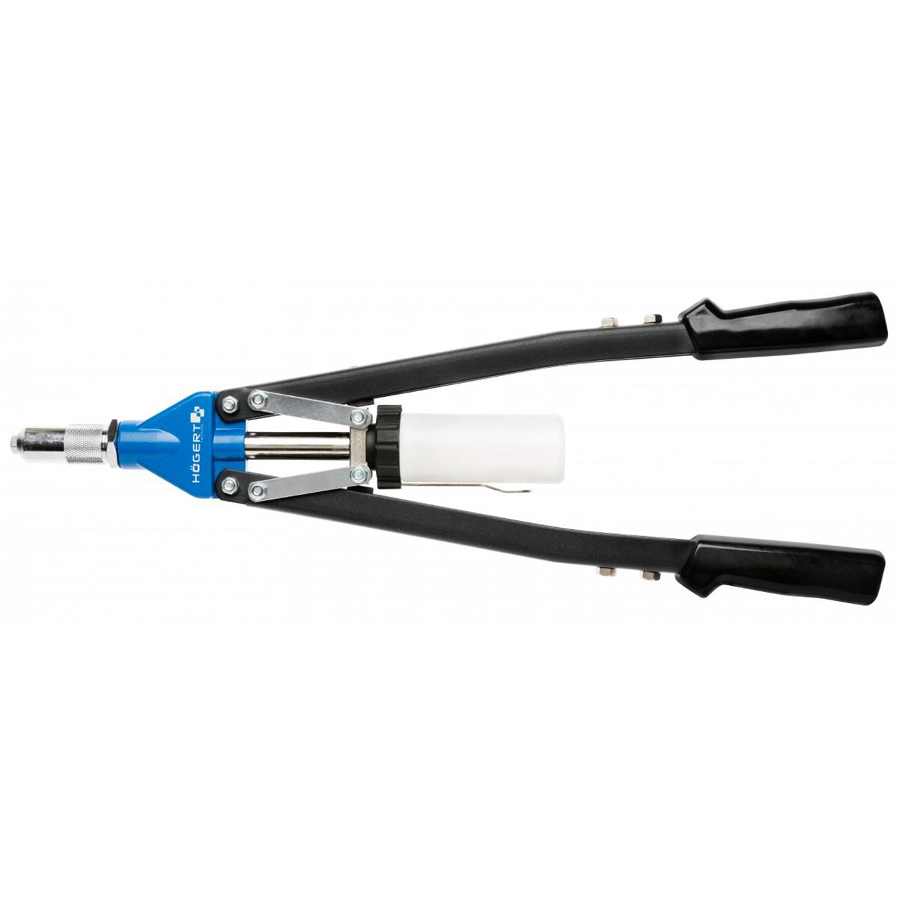 Это прочный двуручный клёпальник длиной 530 мм с пятью сменными головками диаметром от 3,2 до 6,4 мм. Он сочетает универсальность, долговечность и удобство эксплуатации — идеальное решение для профессионалов и домашних мастеров.
